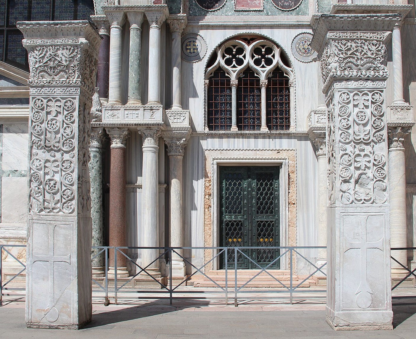 Some traces of its interior also hint at its luxury. Two pillars now outside the side entrance to the Basilica of San Marco in Venice were taken from St Polyeuktos in 1204, with fine decoration that was probably originally also painted.