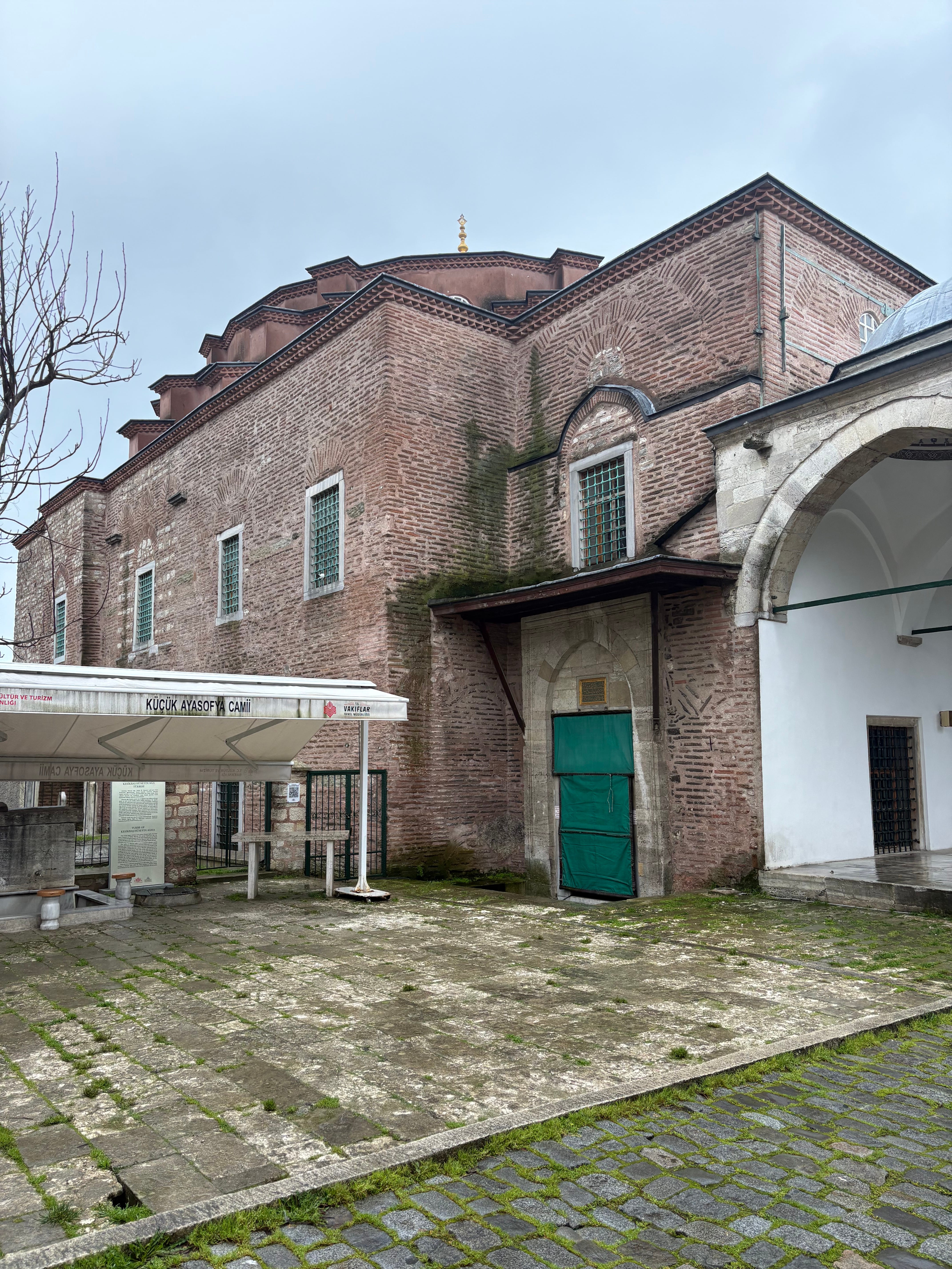 The building and its grounds are also beautifully quiet. Despite being less than 5 minutes’ walk from the most crowded tourist centre of Istanbul, between the Hippodrome, the Blue Mosque and the Hagia Sophia (which is also where you can visit a Roman underground cistern, the Ottoman Topkapı Palace and the beautiful Church of Holy Peace, or Hagia Eirini, another important Byzantine church), hardly anybody seems to come to the Little Hagia Sophia. At least, hardly anybody did on a wet Sunday in February.