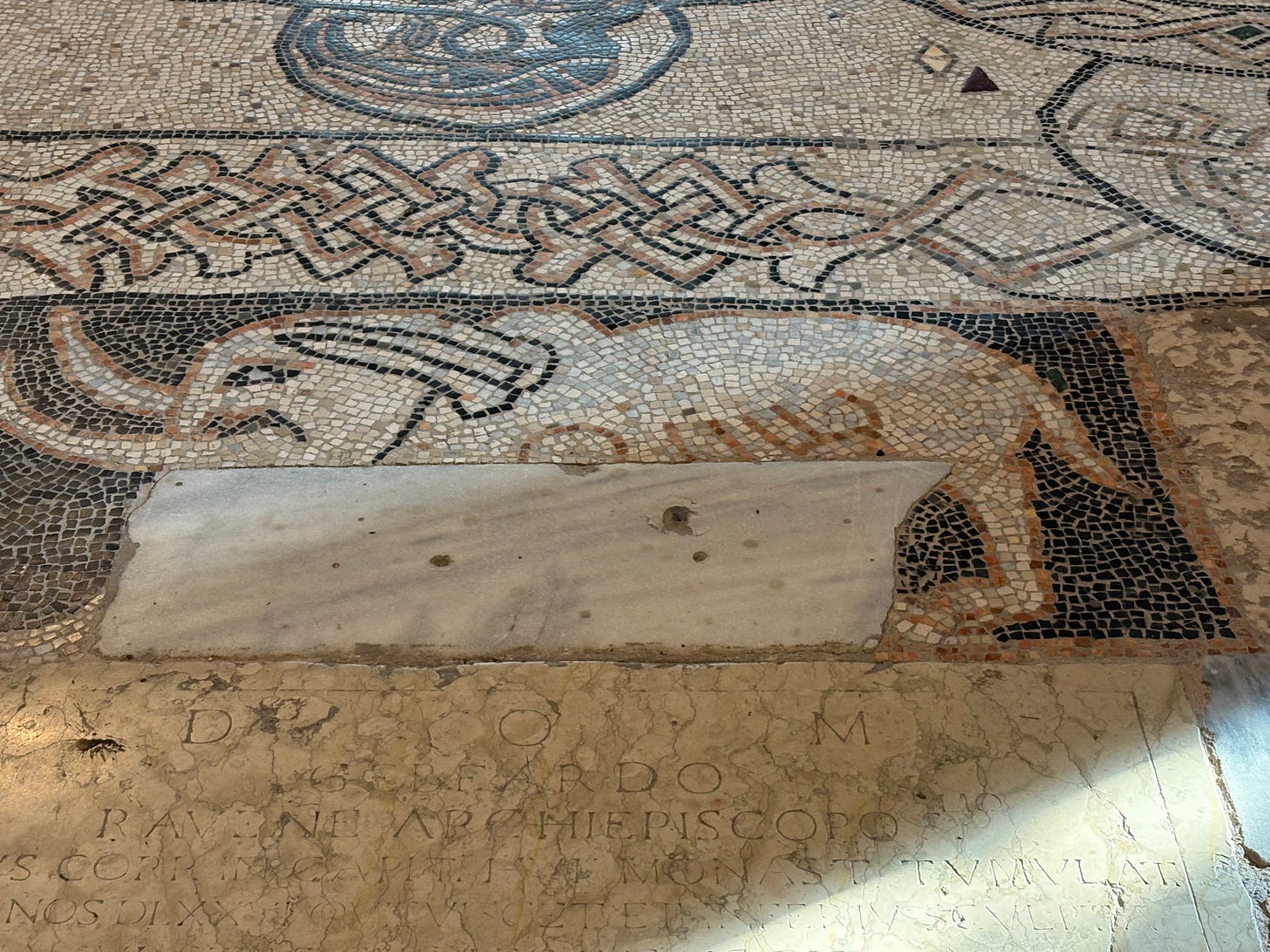 And I leave you with something I don’t think so I saw on previous visits to Pomposa, because it certainly surprised me! I don’t know when it is from or why it is there but on the floor of the church, I did not expect to see an elephant!